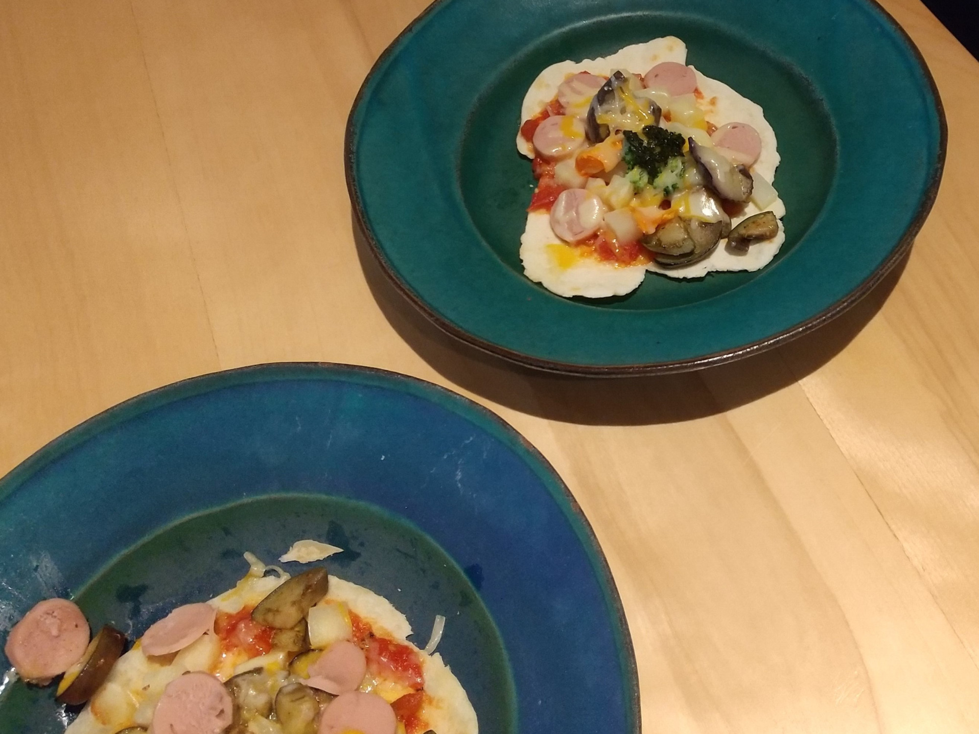 具材を乗せる作業では、それぞれが好きな野菜、色や並べ方にこだわってトッピングしました。個性あるオリジナルピザの完成です。