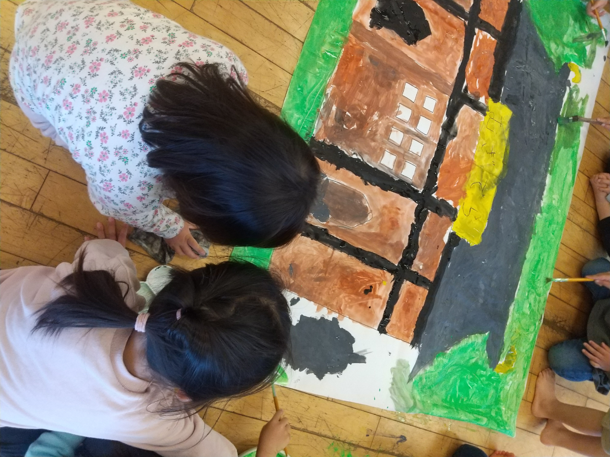 2月に武蔵野どろんこ保育園では日々の製作物の展示や劇を披露する生活発表会があり、発達支援つむぎ 武蔵野ルームの子どもたちも参加しました。