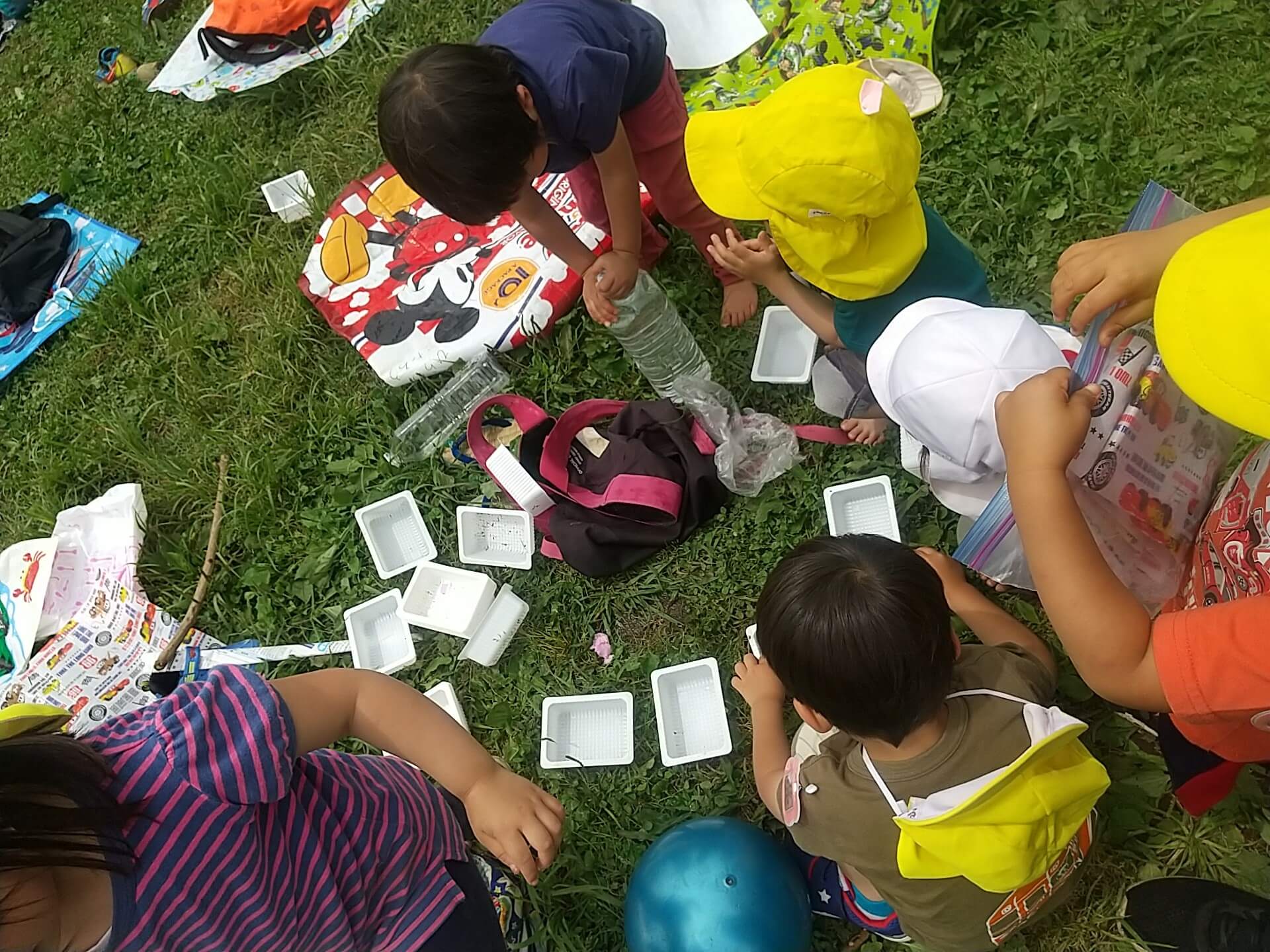 午前中の活動(マンスリー)では散歩や園庭遊びをしています。年齢の違う子同士・障害の有無に関係なく、「子どもの意思でしたいと思う活動」を選んで過ごしています。午後の活動(ビジター)では個別指導やグループ活動を行っています。戸外でできる活動は全て園庭にて実施し、得意な部分を伸ばし、苦手な部分を少しずつ練習しています。