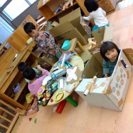 つむぎ新羽ルームには発達支援の専門職員が在籍しており、保育園の職員と協力しながら子どもたちの遊びを見守り、「コミュニケーション」や「言葉や身体の発達」へとつなげていきます。保育園の生活の中で多くの友だちと一緒に過ごしたい、自然に触れる本物の体験がしたい、新しい経験を積みたい等、様々な思いを受け活動しています。