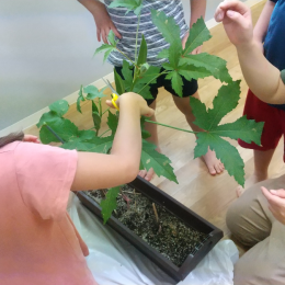 梅雨に入り、雨が降ったり止んだりの日が続きますね。発達支援つむぎ 新羽ルーム、新羽どろんこ保育園の園庭に梅の実がたくさん落ちてくるようになり、園庭に行くと子どもたちが「梅の実があったよ」と教えてくれます。