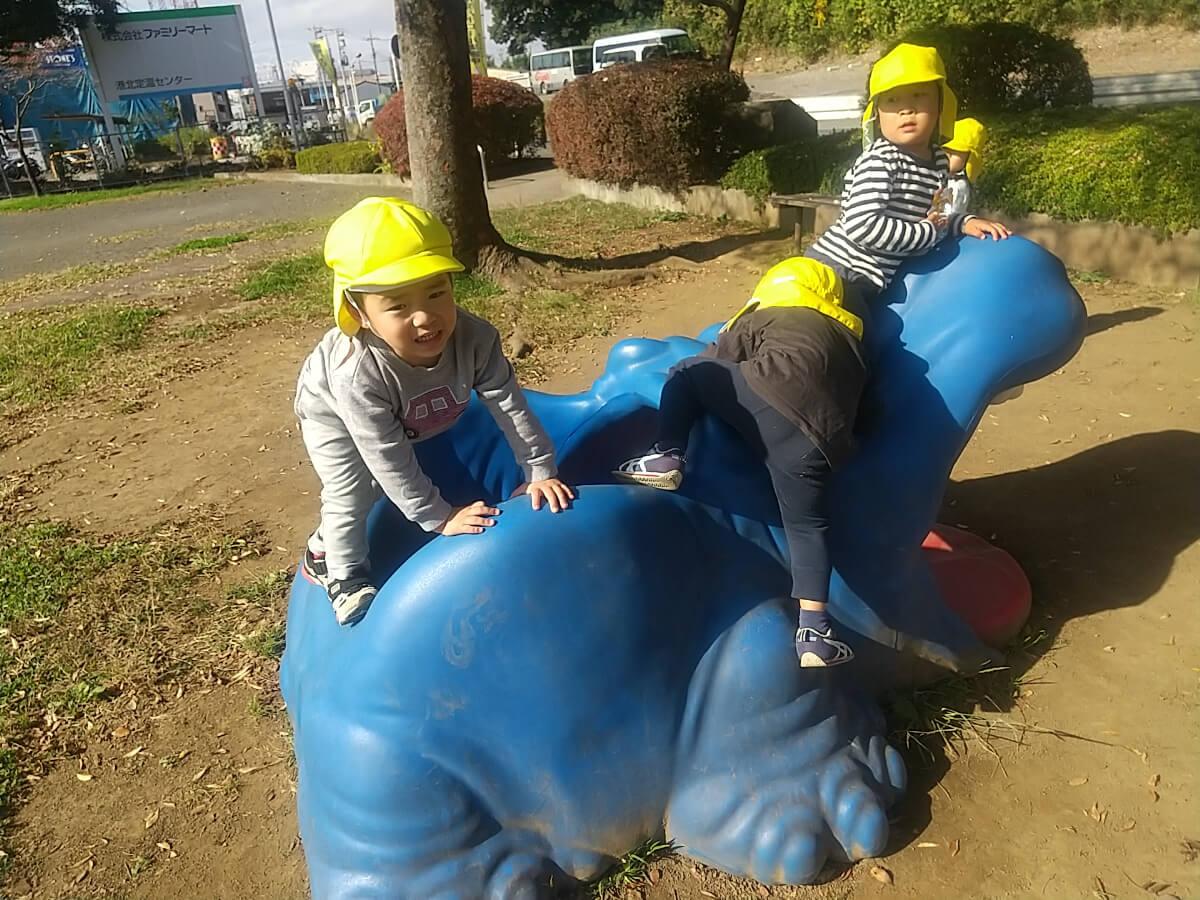 過ごしやすい季節になり、発達支援つむぎ 新羽ルームでは散歩に行くことが増えてきました。公園までの道中は、風で舞う落ち葉を見ることや小川の観察など、子どもたちそれぞれのペースで向かいました。友だちがしていることに興味を持ち、みんなが集まっているところに行き、友だちの様子を見て少しずつ遊びに参加するという一面も見られるようになってきました。