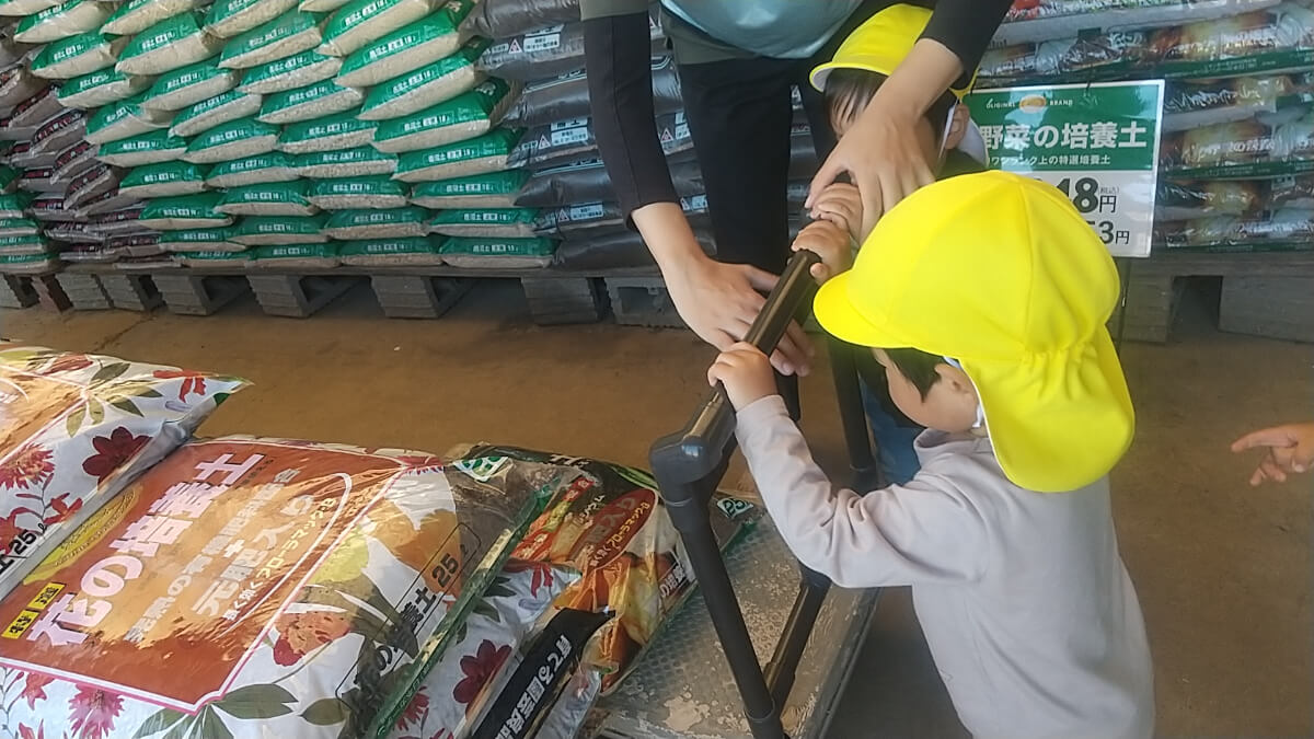 楽しそうに草花を見てまわる子や土の袋に書いてある絵を見て教える子、買い物の手伝いを率先して行う子など、私たちが想像するより様々な表情を見せていました。