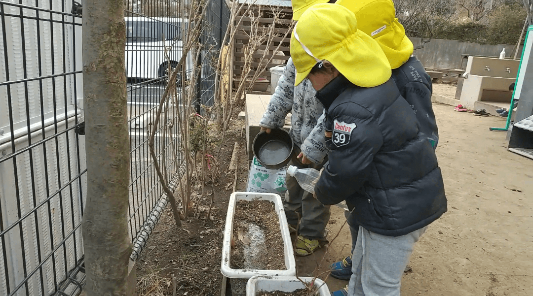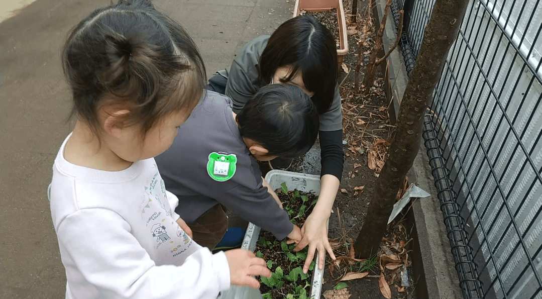 昨年11月に植えたはつか大根は冬の寒さの中、ゆっくりと成長し、先日収穫ができました。寒い時期に植えたため大根のサイズは小さいですが、子どもたちは喜んで収穫に取り組んでいました。