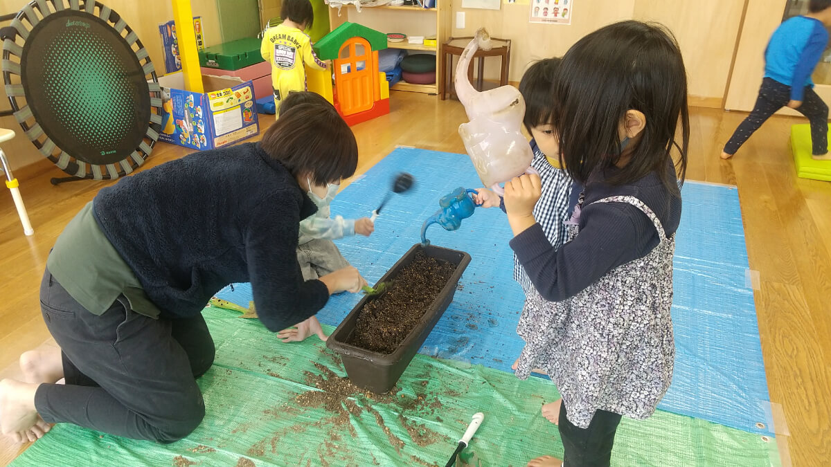 発達支援つむぎ 新羽ルームは開所から一年が経ち、新年度が始まりました。新しい子どもたちも増えたため、それぞれのグループで野菜のプランター栽培を始めました。