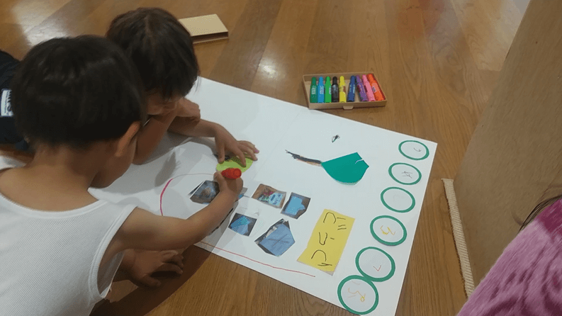 いよいよ梅シロップ作りの日です。子どもたちと一緒に、梅シロップ作りに必要なものや手順を確認しました。写真を切って貼ったり、梅の木の絵を描いたり、見出しを書いたりとそれぞれの方法で梅シロップ作りへの意識を高めていきました。その後、梅を洗う人、拭く人、瓶に梅を入れる人、砂糖を入れる人と自分で役割を選び、役割分担をしてから梅シロップ作りに臨みます。