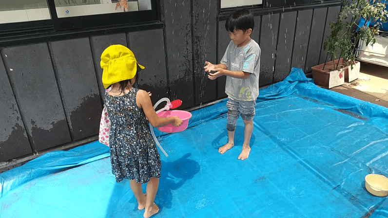 今回の発達支援つむぎ 新羽ルームのブログは、7月の晴れた日に園庭で水遊びをした様子をご紹介します。