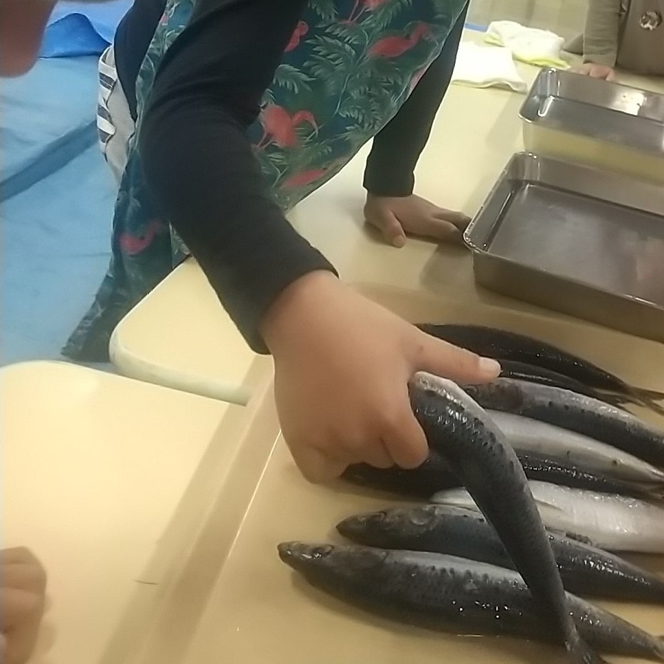 生のイワシを手開きしたことで、魚本来のにおいや感触を感じることや、魚を食べるまでの過程や生き物の生死について学ぶことができました。今後も食育を通して、食物を食べるまでの過程や生き物の違いを学んだり、生き物の生死を感じたりする機会を作っていきたいです。