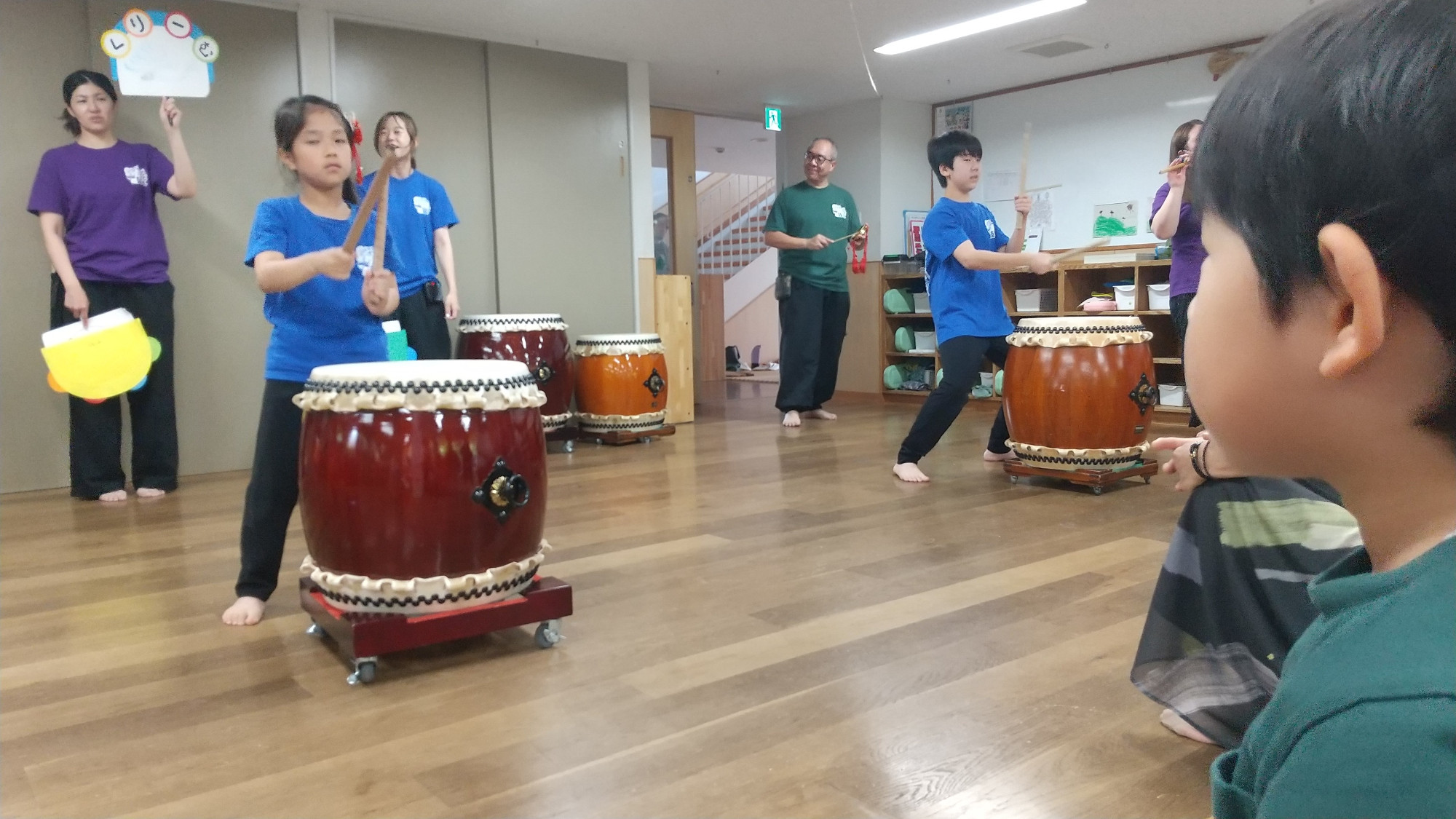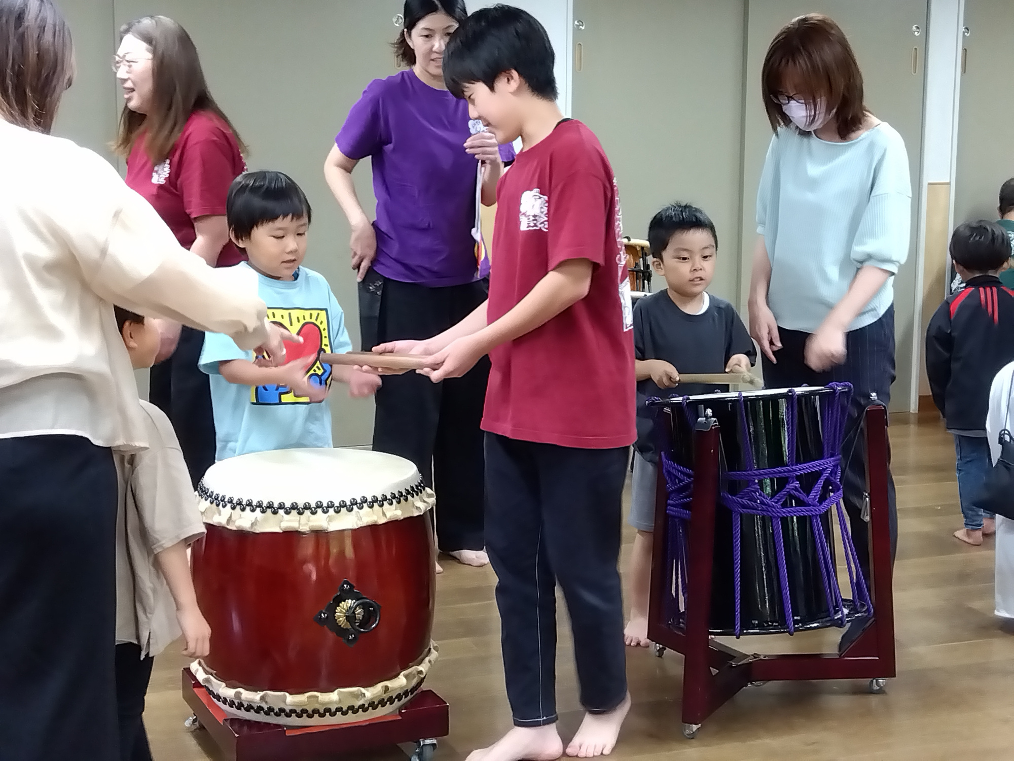 今回の「和太鼓体験」で演奏を聴くことの方が好きな子、実際に演奏することの方が好きな子とタイプも分かれ、子どもたちの関心や興味がどちらにあるのかを知る機会にもなりました。本物に触れる体験を通して、五感で感じることや新しいことにチャレンジすること、地域の和太鼓グループの方々と交流することができました。