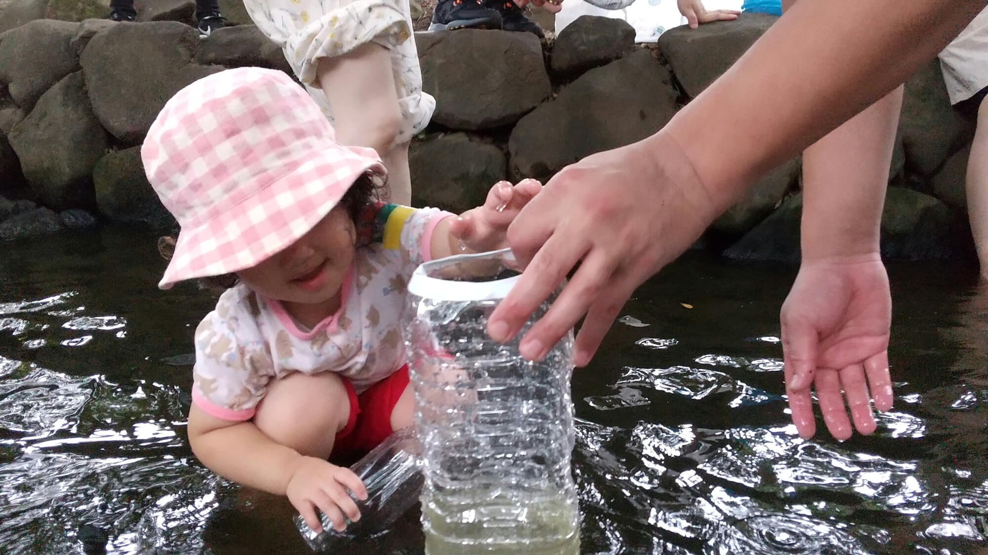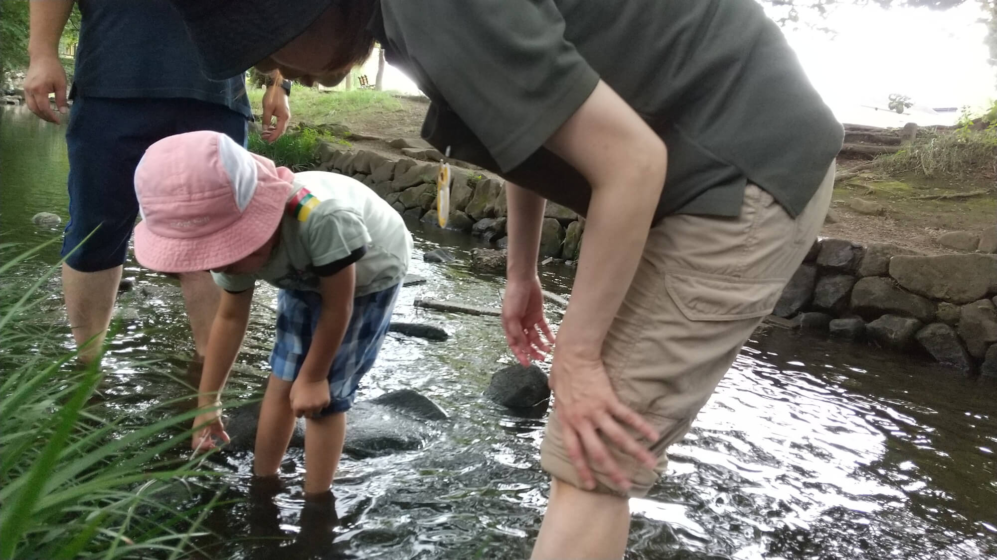 恐る恐る水に入っていた子どもも、あっという間に水の感触に慣れ、探検を始めました。