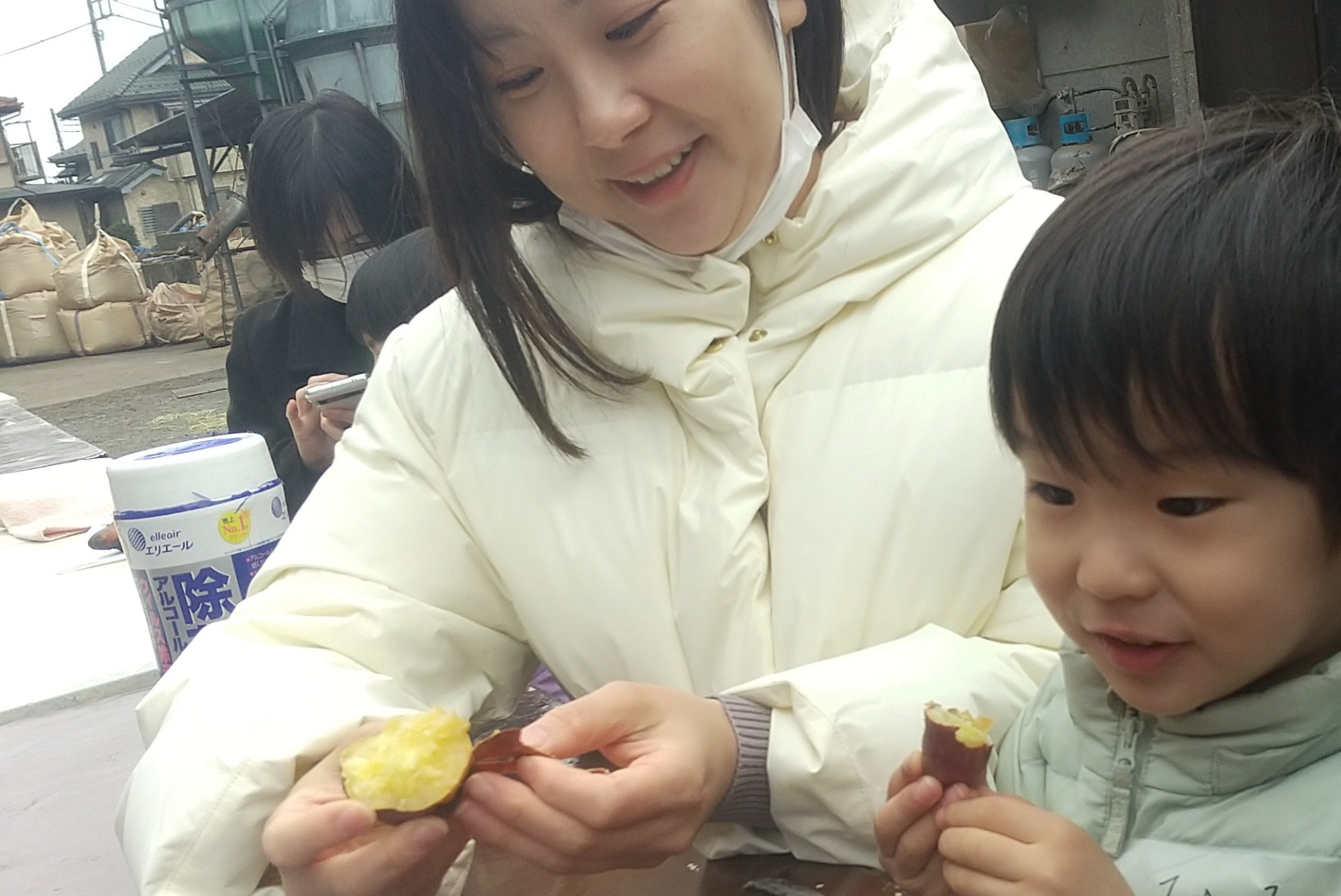 ピザを焼いている間に、少し休憩タイム。窯でじっくりと焼きあげておいたやきいもをいただきます。