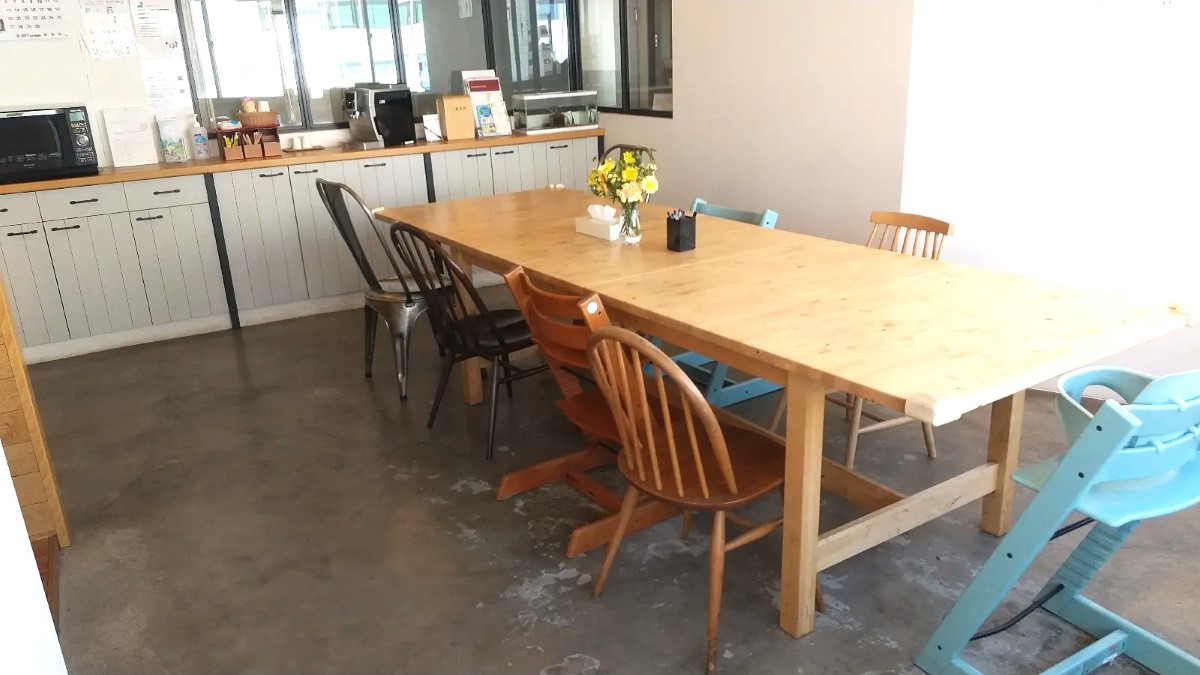 つむぎ 荻窪ルームの特色は、温かな陽のあたる広いカフェスペースです。「保護者様や近隣住民の方に、気兼ねなくゆっくりしていただけるように」という理事長の想いから、児童発達支援事業所にカフェスペースが誕生しました。