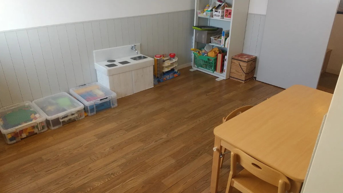 こちらは、おもちゃを自由に選んで遊ぶことができる部屋です。主に、杉並区の日帰りショートステイ事業(一時預かり)を実施しています。