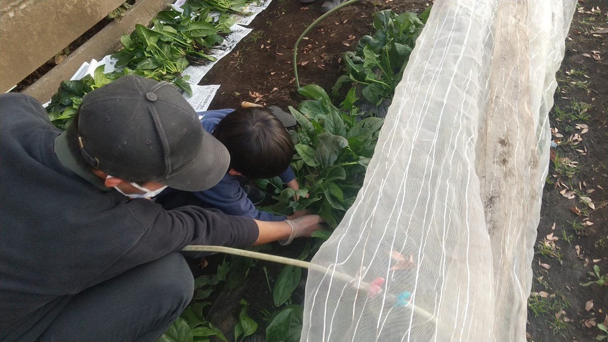 この写真は、ほうれん草収穫の時の写真です。