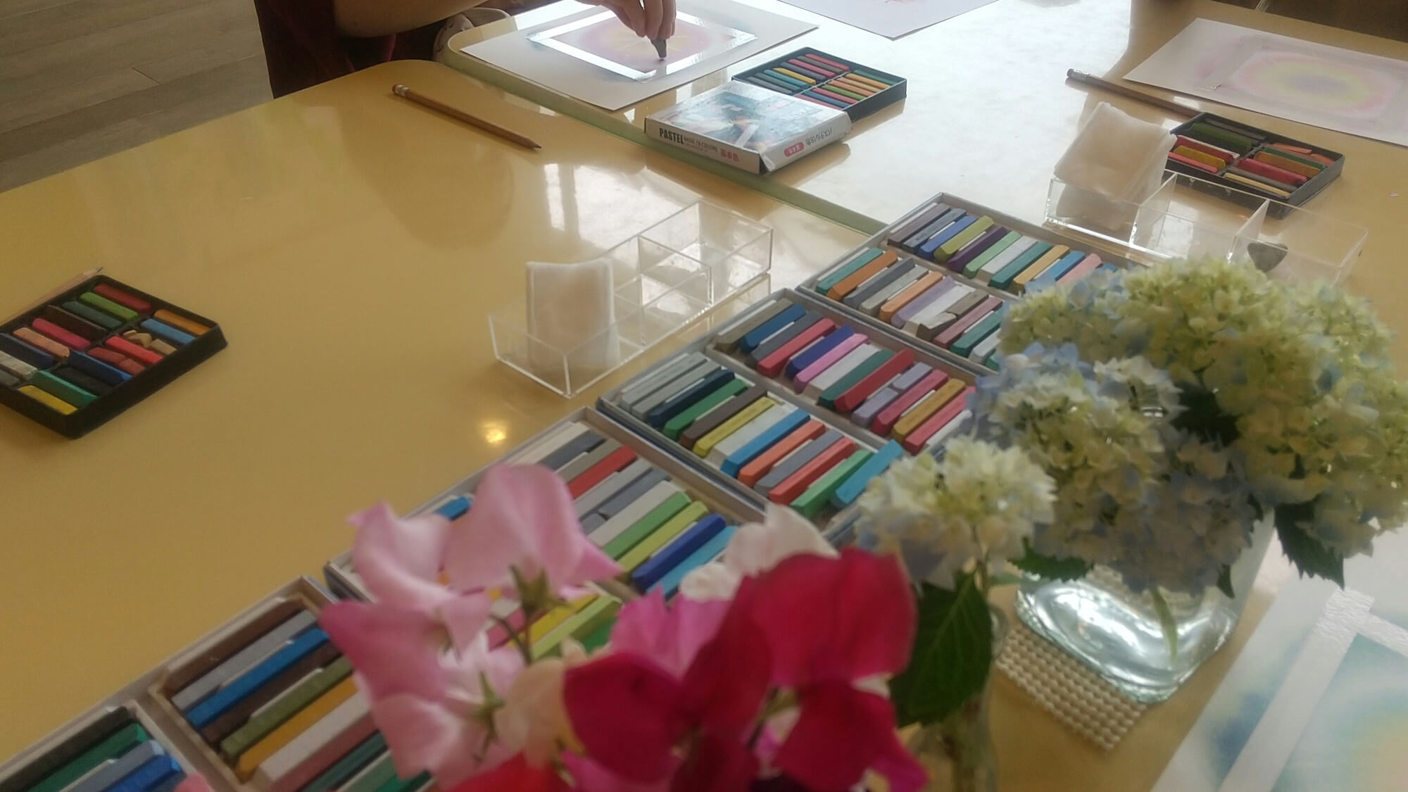 参加された方は、「絵が苦手でも大丈夫ですか?」と緊張した面持ちでしたが、目の前に色とりどりのパステルが並ぶと「わぁ」と声がもれ、表情が明るく変わりました。