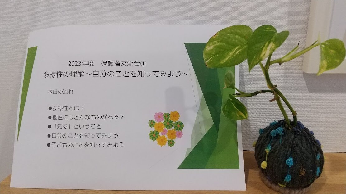 今回の交流会を通して、知っていると思っていた自分の一面や子どもの一面を見直すよい機会になったとお言葉をいただくことができました。次回は就学相談をテーマとし、また保護者のみなさまとお話する機会を持ちたいと考えております。