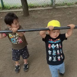 力強く握って「よいしょ!」「んーできないよ」「一緒にやってみよう」