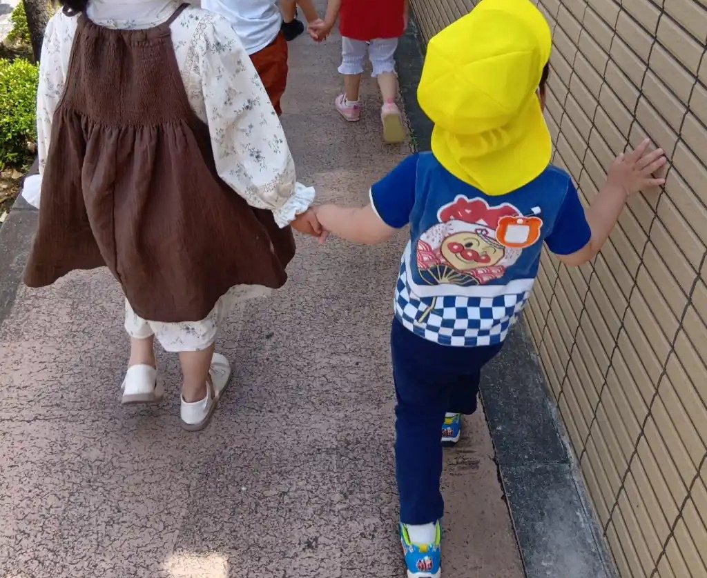 今では、スタッフだけでなく友達と手を繋いで散歩に出かけ、戸外で元気に遊んでいます。