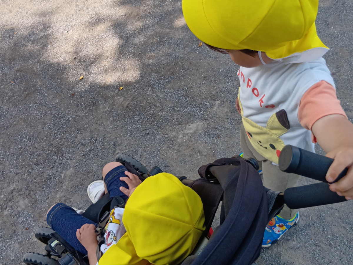 最近では、そのベビーカーを子どもたちが気にかけて押すことを手伝ってくれる姿も増え、どんどん子どもたちの関わりの輪が広がっています。今後も、子どもたちがお互いに楽しんで関わり合えるようサポートし、その姿をみなさまに発信していきたいと思います。