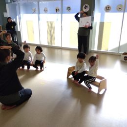 50分程歩いて公園に着くと、すでに桜が咲き始めていました。桜の蜜を吸いに来た沢山のメジロを間近で観察することもでき、子どもたちも興味津々に見つめていました。
