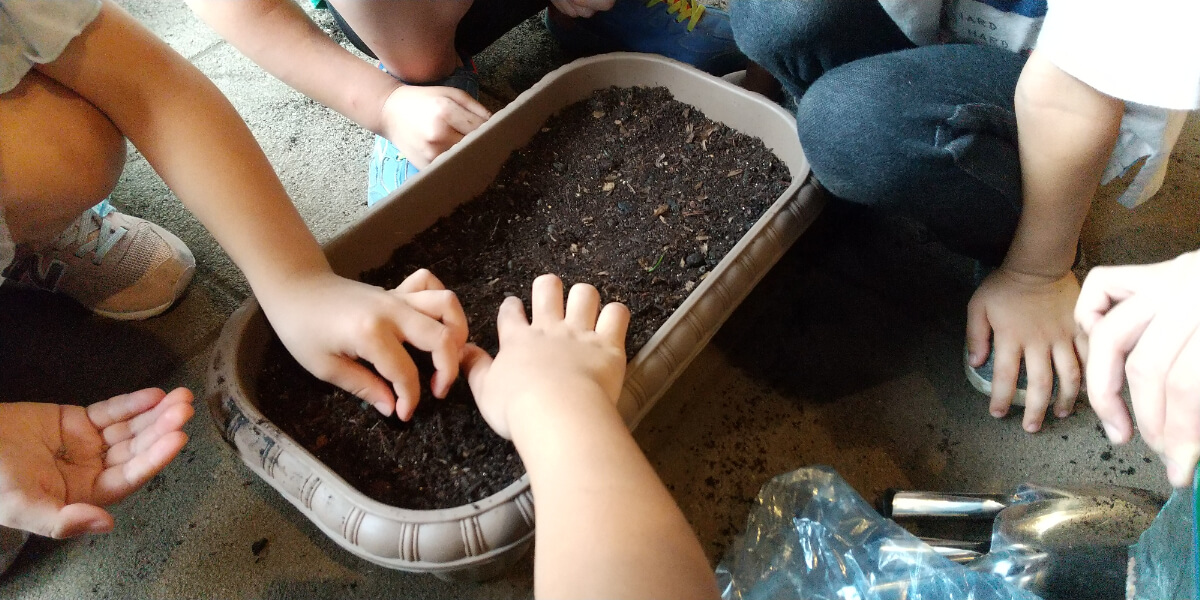 しかし、1月になっても、生えてきた芽はあまり元気がなく、しっかり育っているのかが分からない様子でした。子どもたちにどうするか聞いてみると、「どうなっているか見てみたい!」という意見があがり、種を植えたところを掘り起こしてみることにしました。