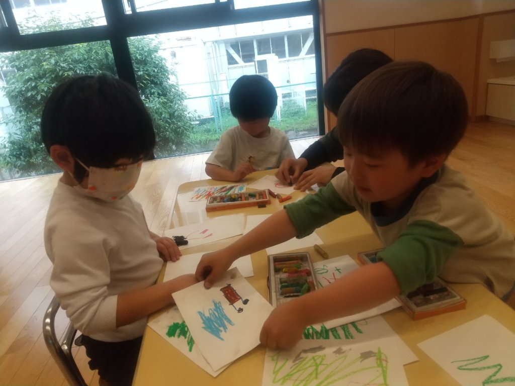 3:最後に、クレヨンでお絵描きをしている場面です。