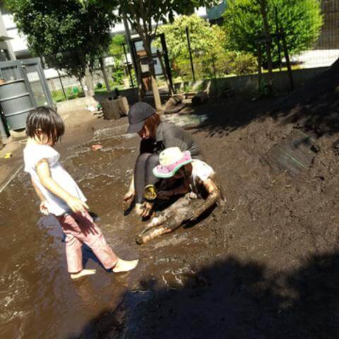 スタッフも泥だらけで遊ぶとどもたちの遊びもダイナミックになっていました。