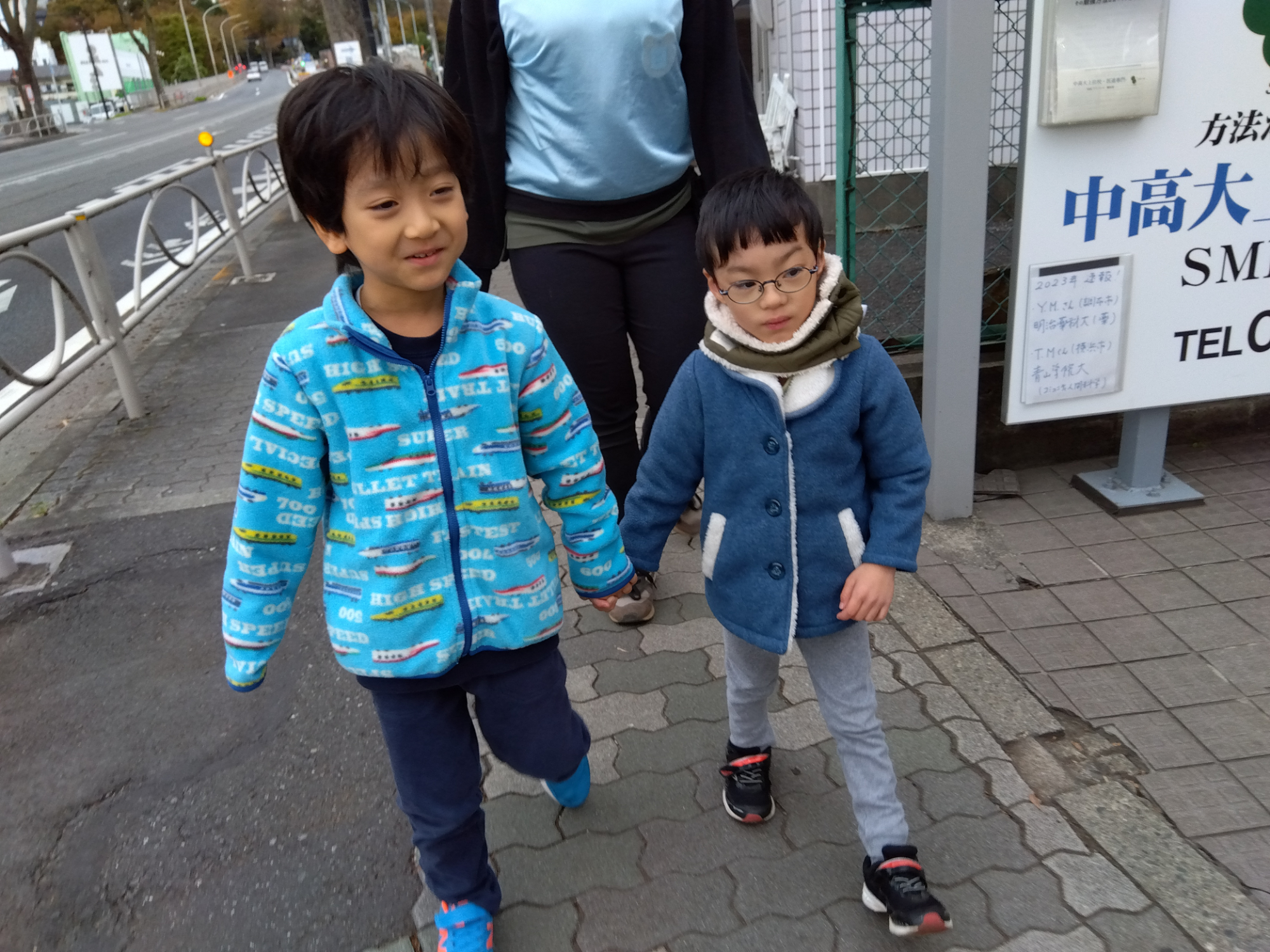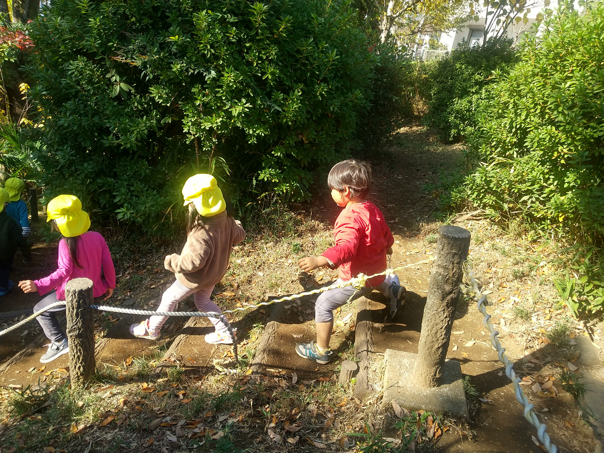 つむぎ つつじヶ丘ルームでは、寒い冬にこそ戸外に出て、思い切り身体を動かしながら遊び、強い体をつくることを目指しています。散歩活動は、友だちと遊ぶ楽しさを知ったり、四季折々の自然に触れたりと、実体験を通して様々な経験を積むことができる大きな機会ともなるため、今後も積極的に取り入れていこうと思っています。