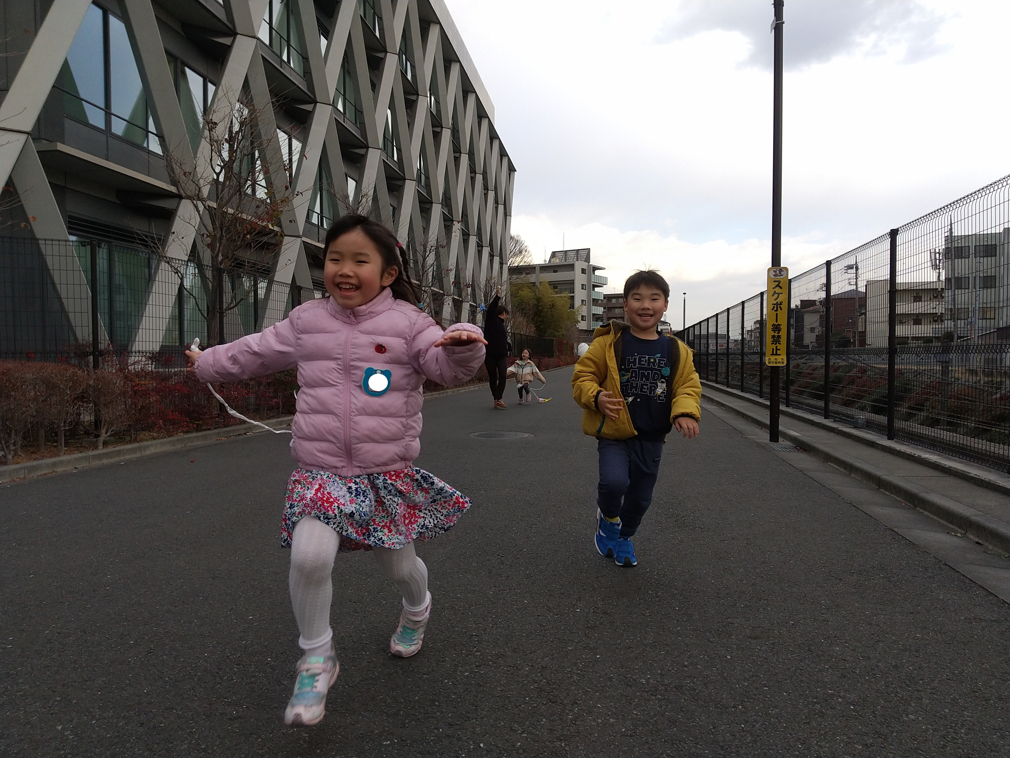凧を揚げて走る子どもたち