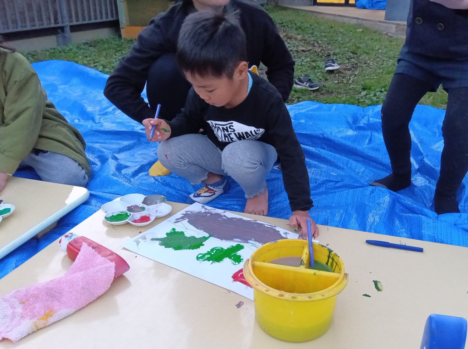 4月からスタートしたこのグループは、この6名で様々な活動を経験してきました。そのたびに友だちへの意識が強まり、関係性が深まってきたことで、グループでの活動が安心して過ごせ、自分の気持ちを素直に出せる場所になってきております。そのようなことも絵を描くことに関しても、自信に繋がっていると思います。