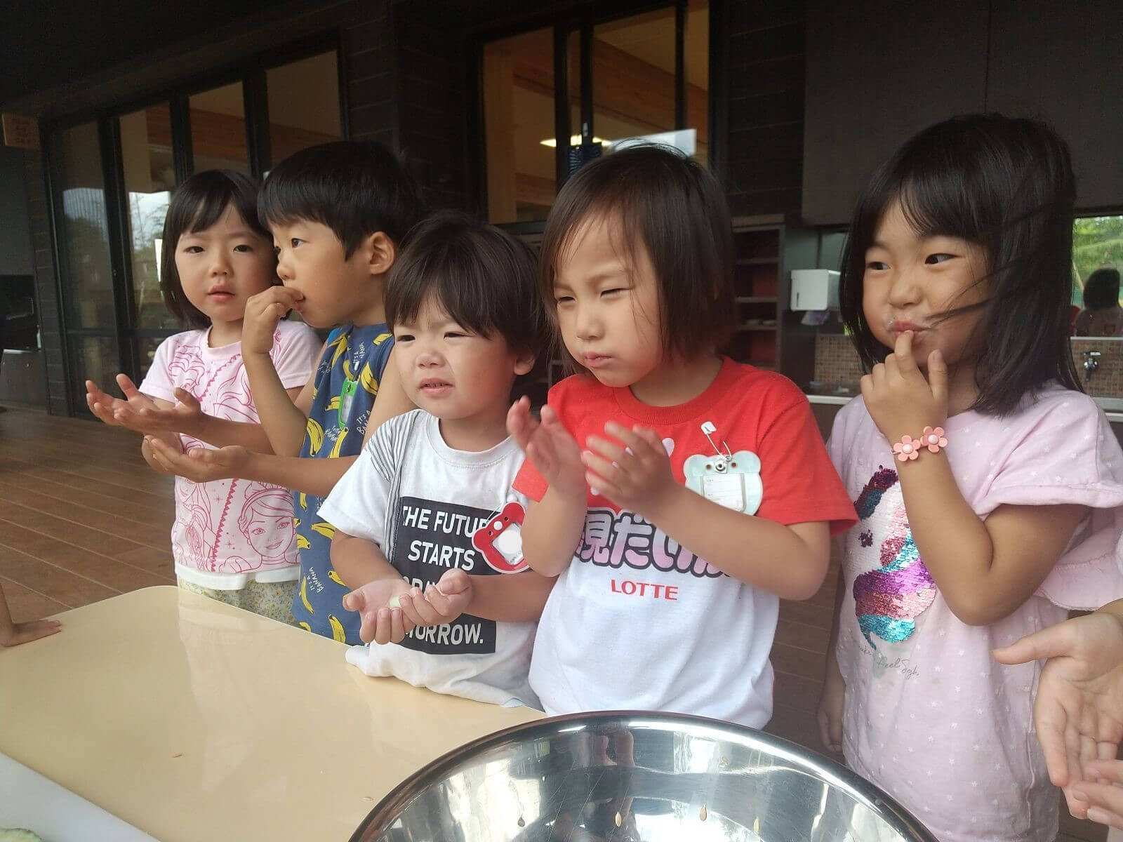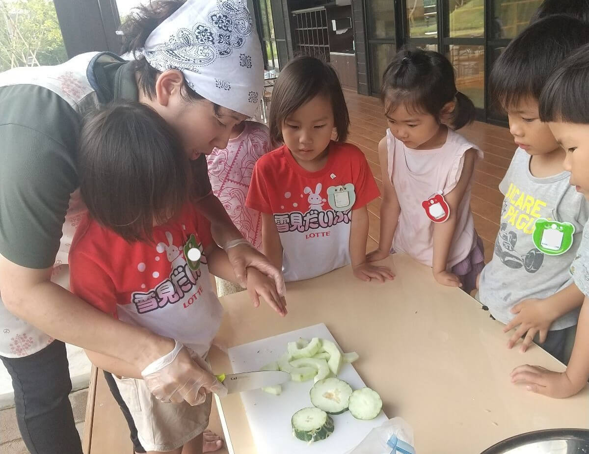 「甘くて柔らかい!」「メロンみたいな味がする」「きゅうりにも似てるね」「美味しくない」など想像していた瓜の味と、実際に食べた味その違いに驚く子や、「瓜美味しいよ」と友達に勧めに行く子など、様々な子どもたちの姿が見られました。