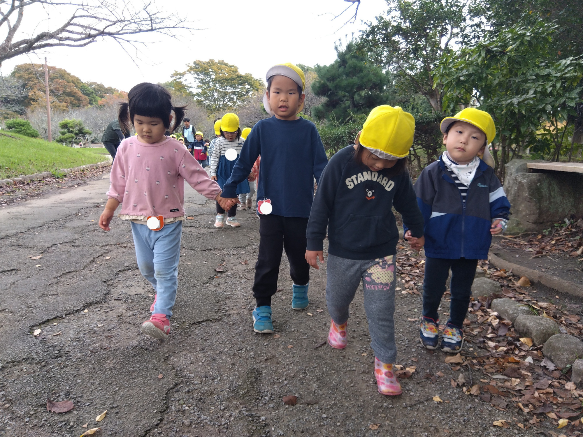 今回の散歩では秋ならではの自然物に触れ、さまざまな発見や面白さを感じることができました。これからもさまざまな場所に散歩へ出かけ、園外でしか経験できないことをたくさん楽しみたいと思います。