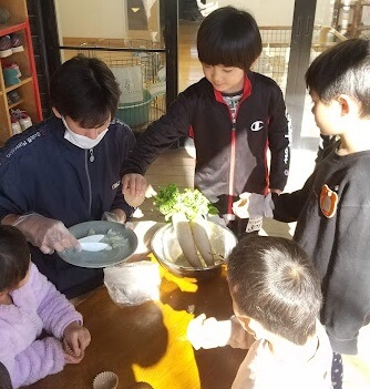 子ども発達支援センターつむぎ 浦和美園「大根の試食会」