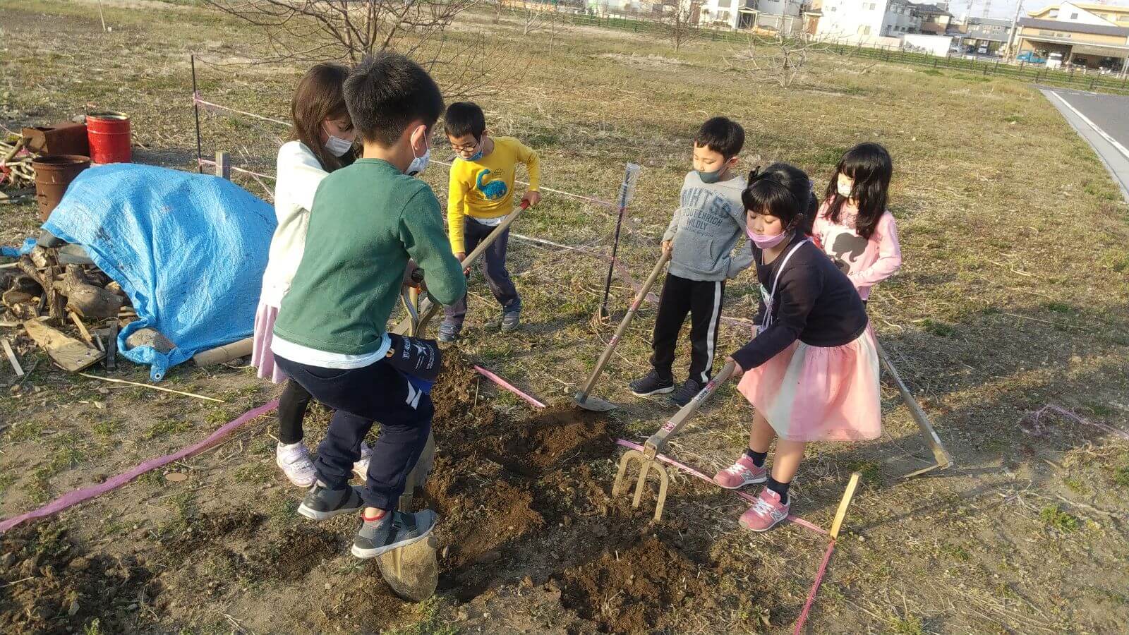 たくさんの自然の教材を提供してくれた畑も、拡大してよりたくさんの野菜を作れるように計画中です。子どもたちと大人が一緒になって鍬やシャベルを持って畑拡大計画を立てています。