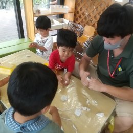 今年は同じどろんこ会グループの南魚沼どろんこ保育園からたくさんの柿をお裾分けしていただきました。しかし渋柿だったのでそのままではなかなか食べることができませんでした。それでも子ども達は玄関のカウンターに置いてある柿を見て「わあ、柿だ」と興味津々。「渋くて食べられないよ」とスタッフに言われてもかじってみたくなる気持ちを抑えられない子もいました。