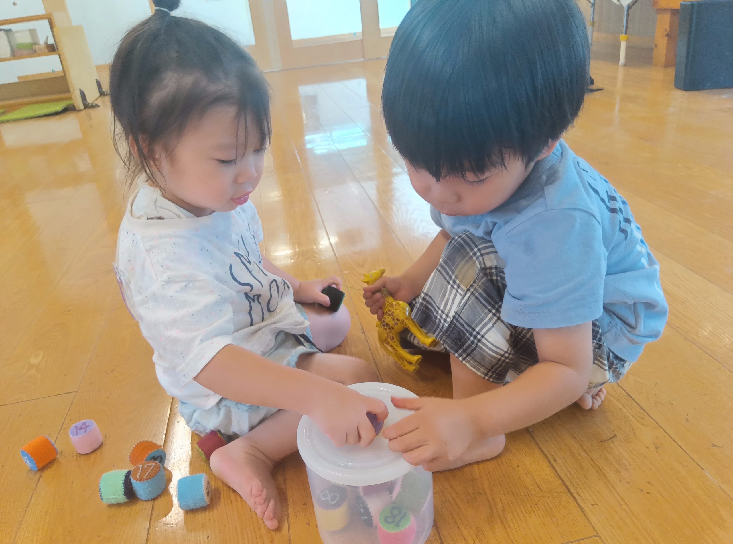室内遊びでは、一人遊びが多くみられていた子どもたちが、一つの玩具を他児と取り合ったり、共有したりする姿が見られています。様々な経験の積み重ねが、他者の気持ちに気づき、社会のルールを知るきっかけになっているのではないかと思います。