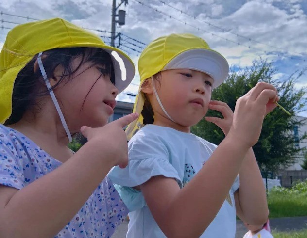 友だちがシャボン玉をしているのを見つけて近寄ったり、たんぽぽの綿毛が飛んでいく様子を一緒に眺めたりと、何をするのも友だちの存在が大きく興味が拡がっています。