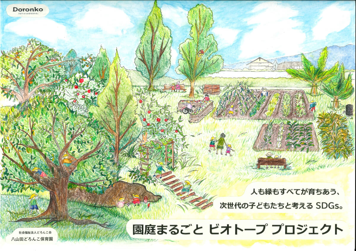 なぜ今園庭の工事をしているかというと、当園の「地域と子どもたちと一緒に自然と共生する場を創り、次世代の子どもたちとSDGsを考えていきたい」という思いを形にした「園庭まるごとビオトーププロジェクト」が、第32回公益財団法人都市緑化機構および第一生命保険株式会社主催「緑の環境プラン大賞」ポケット・ガーデン部門で国土交通大臣賞を受賞したからなのです。