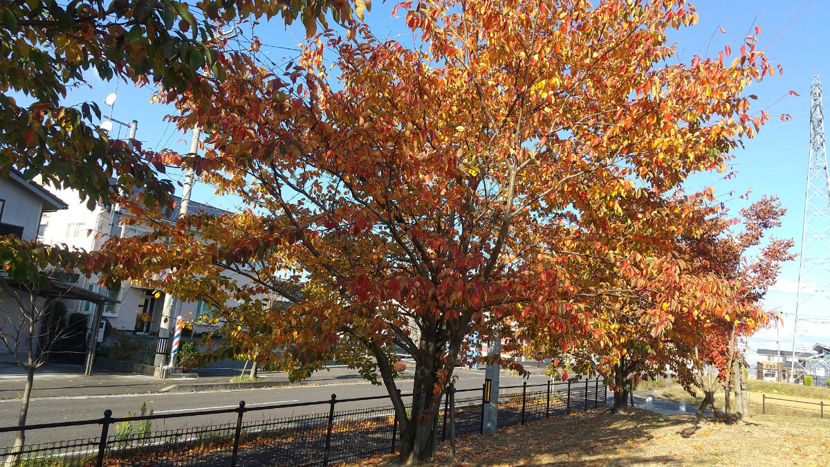 その広場の木々が色とりどりに染まり、色鮮やかな落ち葉の絨毯が出来始めました。