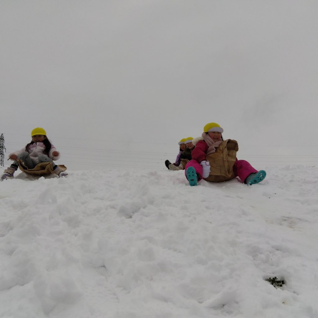 「大きな雪だるま作れるかな」「滑り台を作ろう」「一緒にそりすべりしようよ」