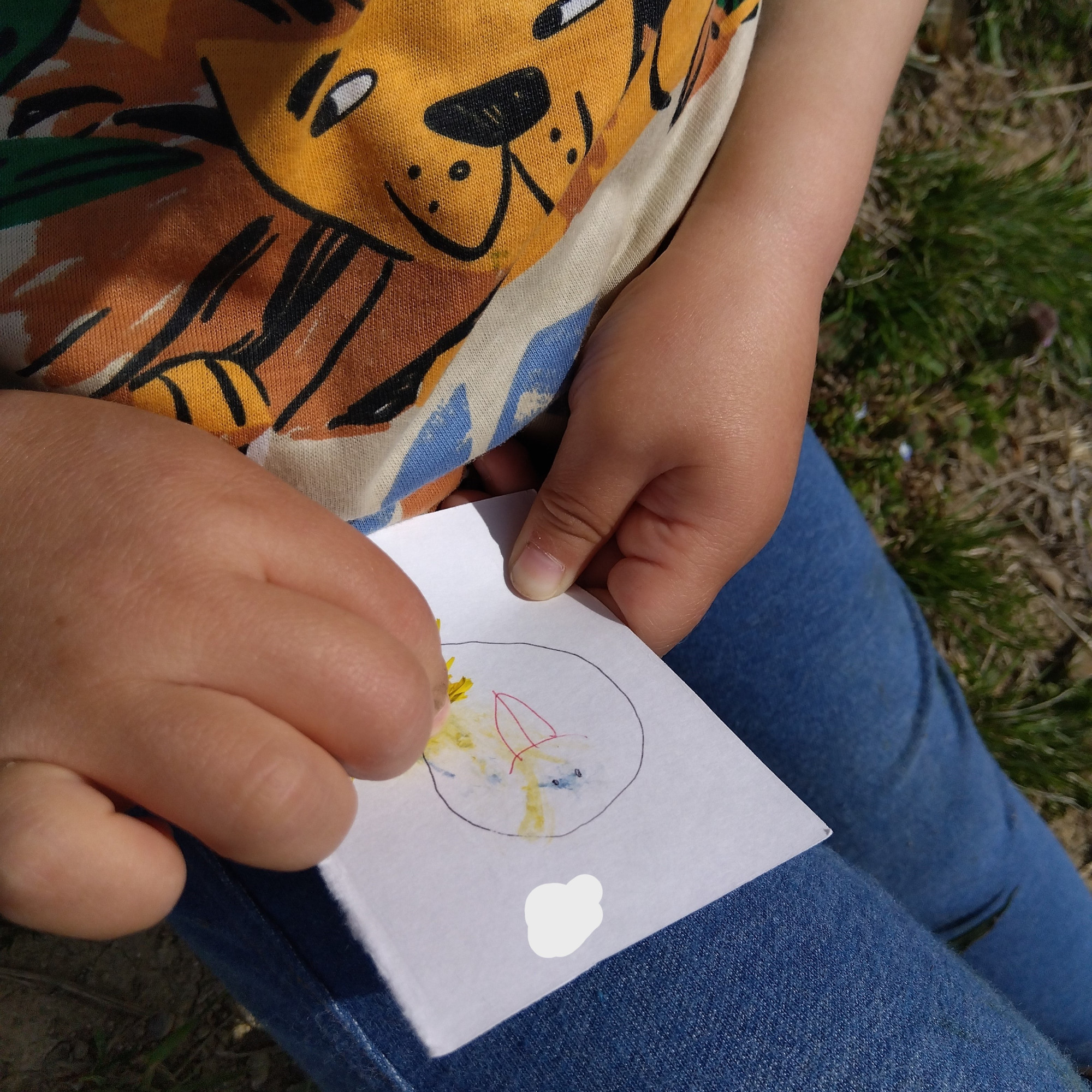 そこで翌日、白い画用紙を広場へ持っていき、草花で塗り絵をしてみることにしました。