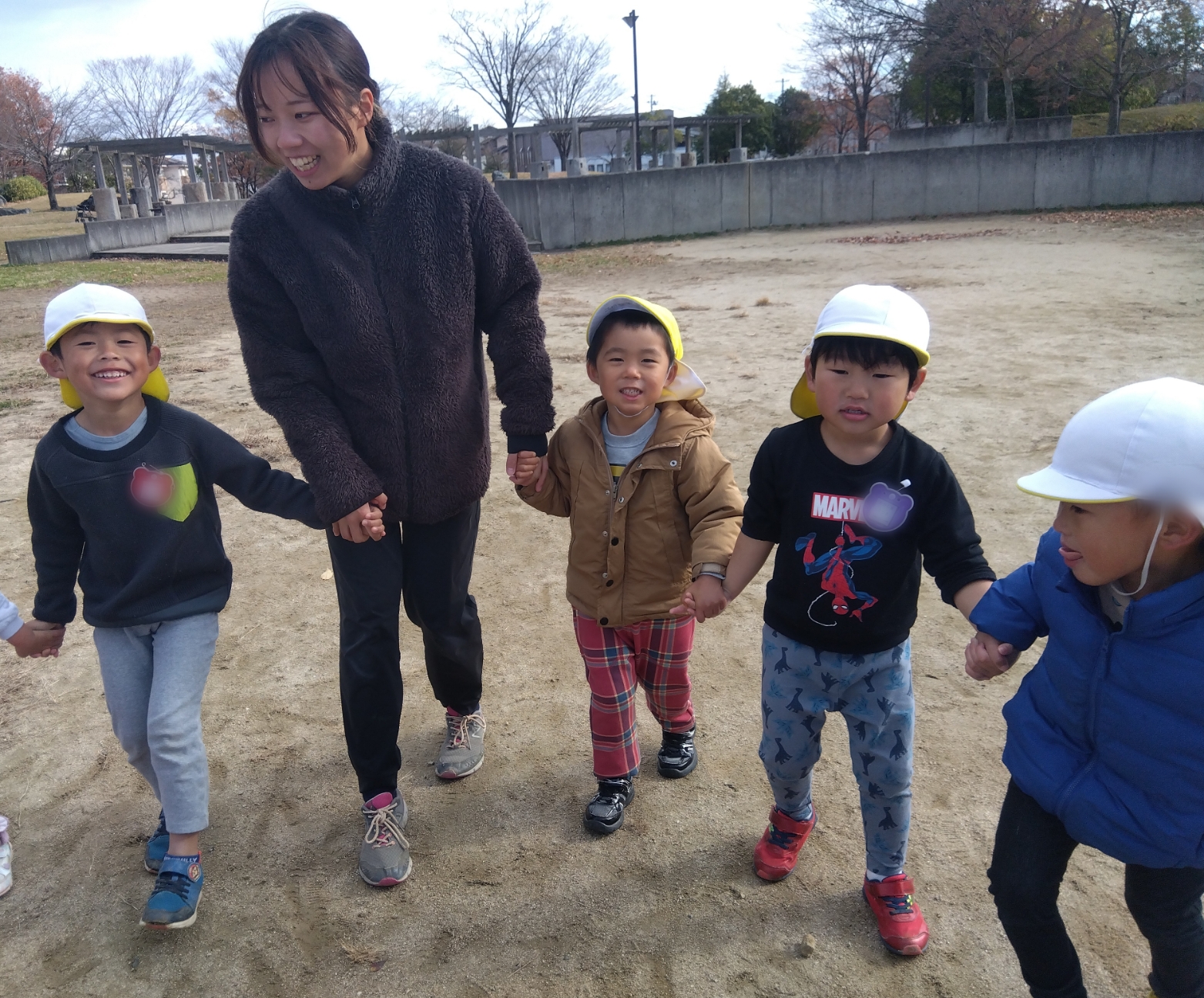また遊びの中で手を離してしまった時は都度言葉をかけて、手を握ったり、握る手の角度を変えてみたり、ジャンケンができない子の代わりにやってあげようとしたり、どうしたら一緒にできるかを自然と考え、提案してくれる保育園の子どもたちの姿も見られました。