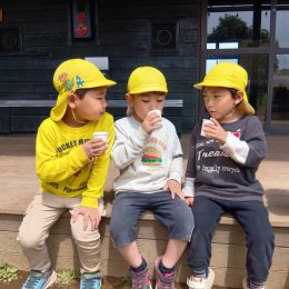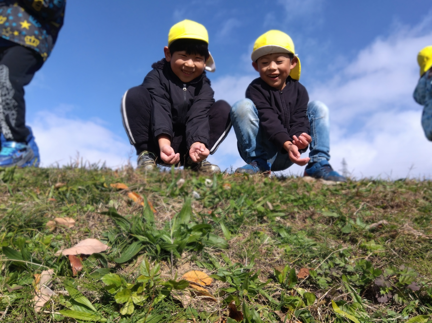 保育園の築山や畑に霜がおりて白くなり、子どもたちは少しずつ変わりを見せる景色に気がつき、楽しんでいます。子どもたちの間にも少しずつ変化がみられました。