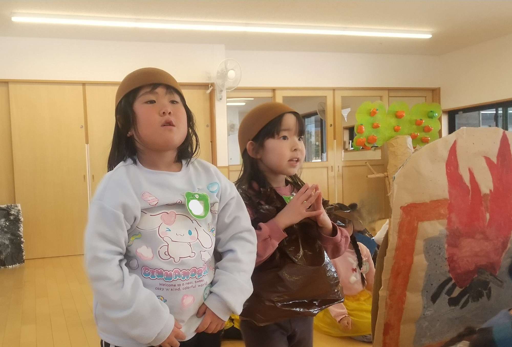 つむぎの子どもたちも保育園に在園の子どもたちに混ざり、歌や劇の練習に一生懸命取り組みました。