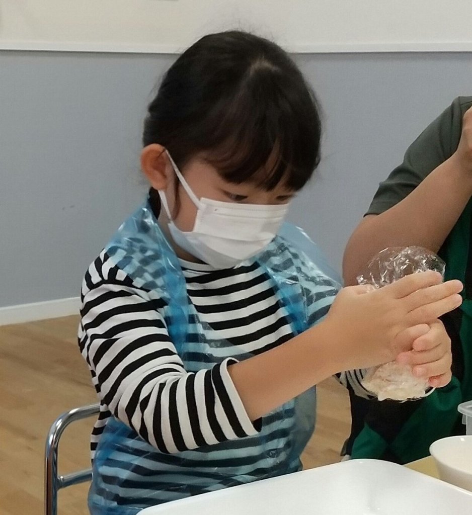 10月の異年齢活動は「食の秋!おにぎり作って、戸外で食べよう!」です。