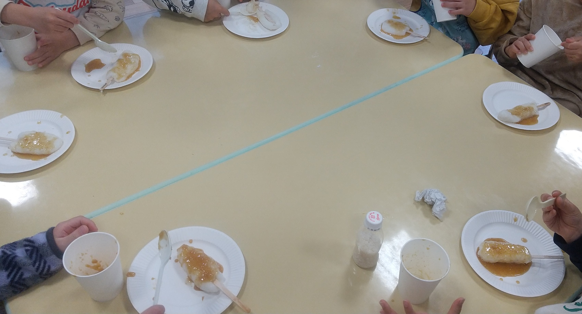 しばらくすると、「まだ食べられないよ」「これから焼くの?」と、五平餅を作るわくわくの言葉へと変わっていきました。
