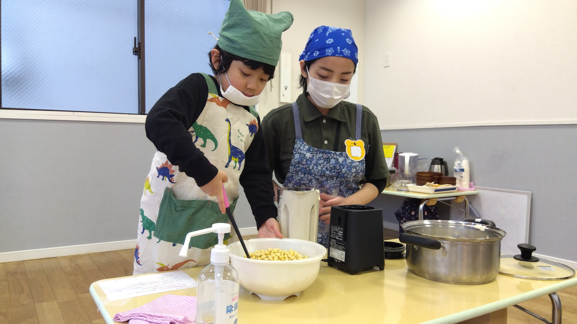 発達支援つむぎ 横浜東口ルームでは2023年、初めて枝豆から大豆を育ててみました。今回はその収穫した大豆を使ってとうふを作りました。