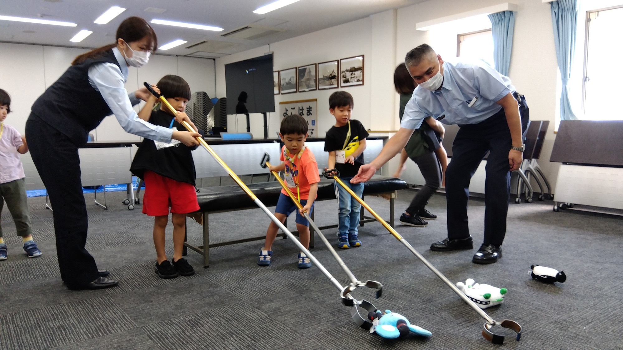 電車に乗るときのマナーや注意することをクイズ形式で学んだり、落とし物を掴むマジックハンドにチャレンジしたり、実際に切符を買って券売機の裏側を見せてもらいました。