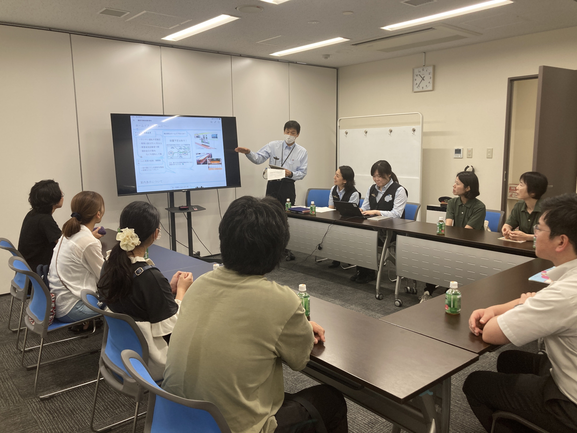 その間、大人たちはJR東日本の職員の方々と、発達障害がある方や子どもたちが公共交通機関を利用するときにどのようなサービスや施設があると使いやすいか意見交換を行いました。