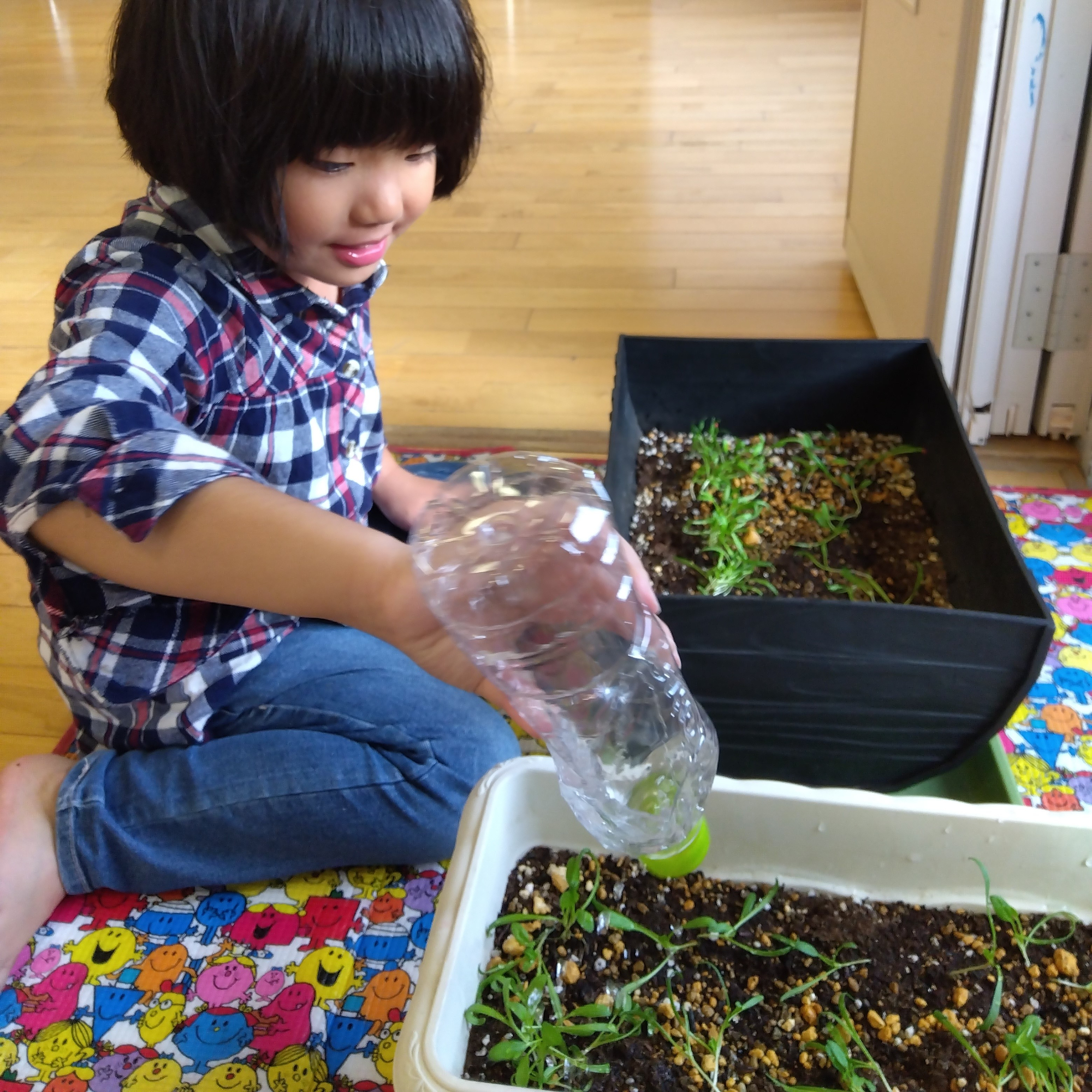 発達支援つむぎ 横浜西口ルームの子どもたちが種を蒔いて水をやり、